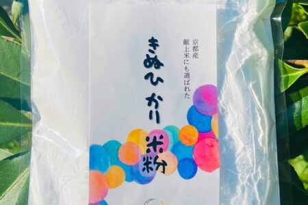 米粉は主に京都丹波産きぬひかりから製粉しています。炊きあがりのご飯が白く、つやつやシルクのような輝きで、程よい粘りもあり、冷めてもしっかり甘味が残るお米です。天皇陛下の皇位継承に伴う儀式、大嘗祭で献上米としてもお選びいただきました。